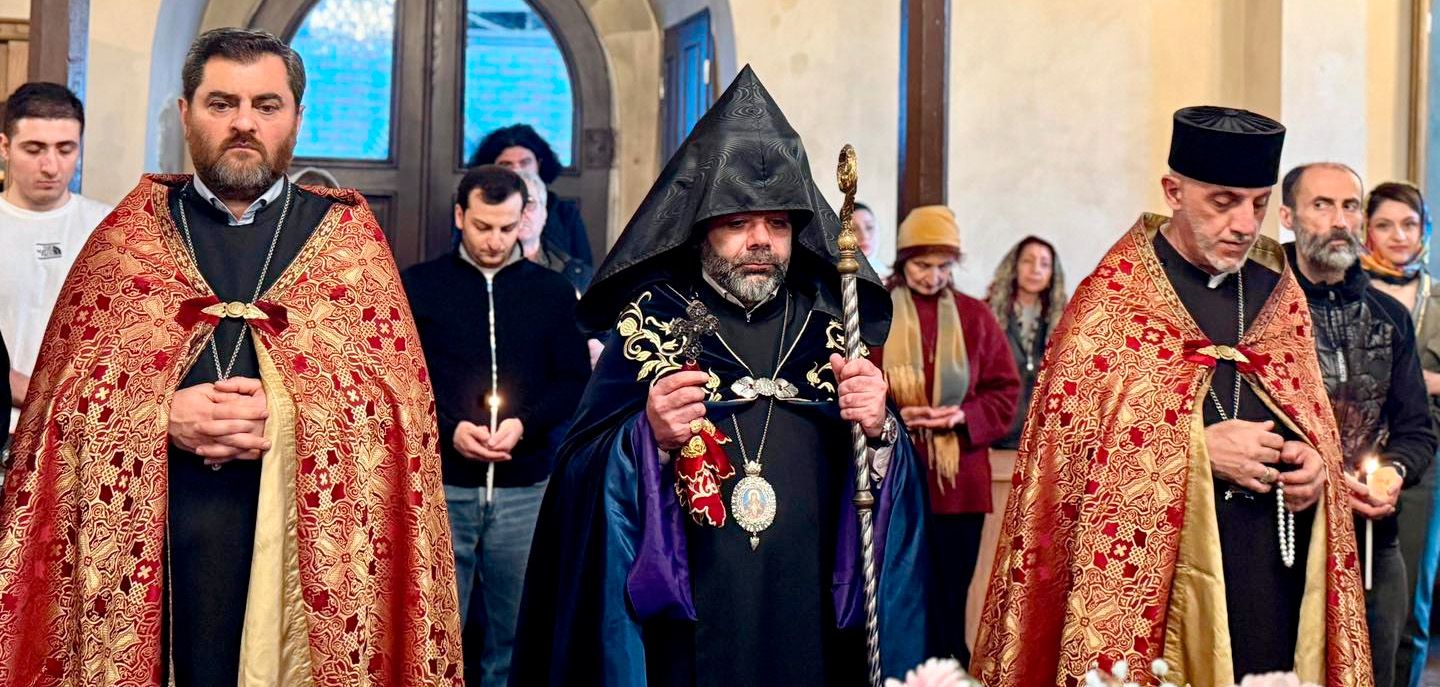 3 апреля 2026 года, в кафедральном соборе Сурб Геворг и в церкви Сурб Эчмиадзин на Авлабаре г. Тбилиси, под предводительством и с благословения Главы Епархии ААЦ в Грузии Его Преосвященства епископа Киракоса Давтяна, после вечерней службы, состоялся чин погребения, в ходе которой символическая гробница Иисуса Христа была окроплена розовой водой и проведена вокруг церкви в присутствии верующих.