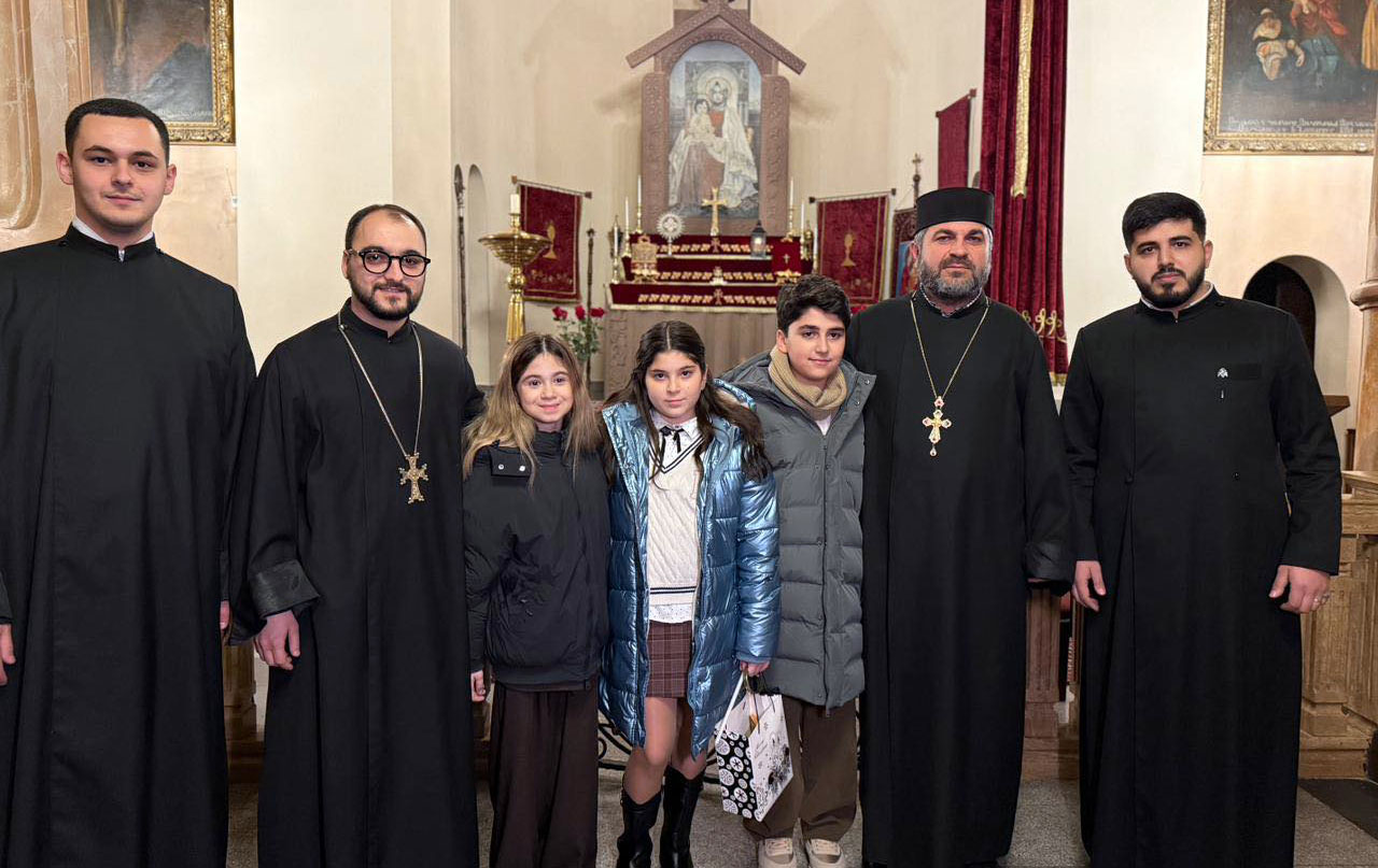 Встреча с тремя звездами армянского происхождения стартовала с посещения церкви Сурб Эчмиадзин на Авлабаре, где достопочтенные иереи и благочестивые диаконы приветствовали певцов, а достопочтенный иерей Отец Самвел Торосян передал наилучшие пожелания Главы ААЦ в Грузии Его Преосвященства епископа Киракоса Давтяна, благословил детей и вручил им памятные подарки.