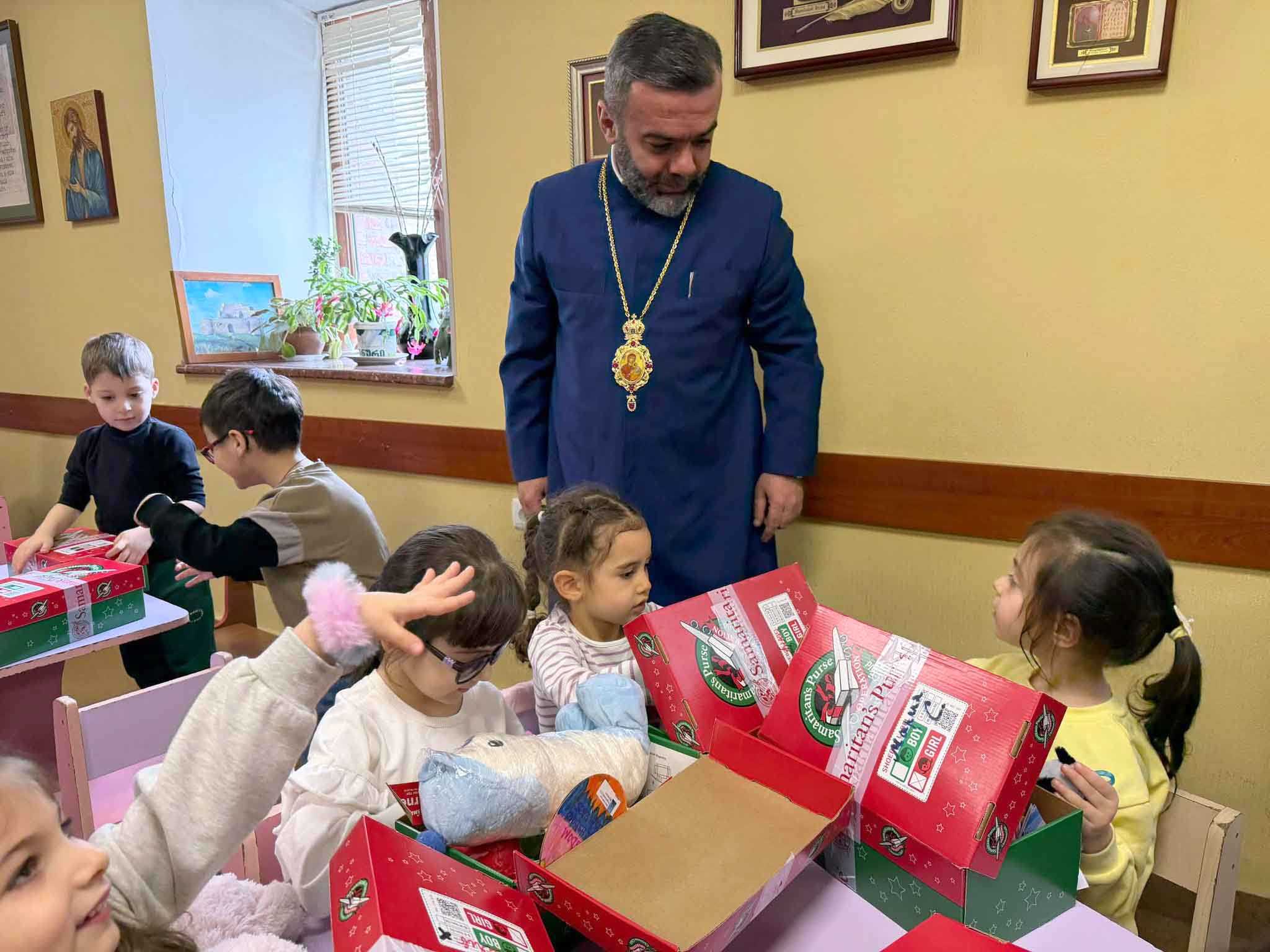 После Своего  благословения, Глава Епархии объяснил детям, что как и в прошлые годы, и в этот раз, по инициативе христианской благотворительной организации «Кисет Самаритянина», дети из зарубежных стран прислали подарки, желая порадовать своих сверстников и выразить им свою любовь и доброту.