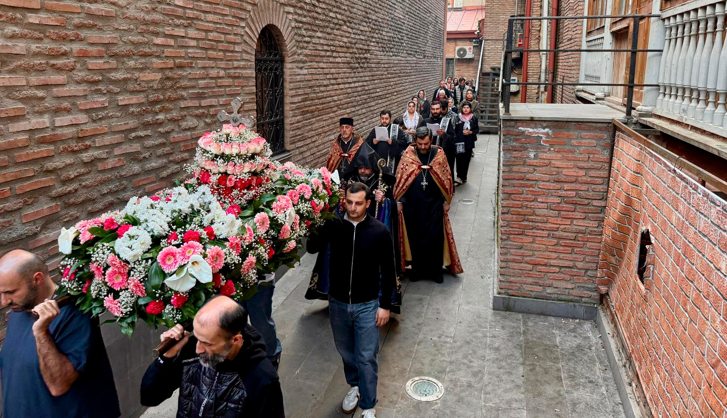 3 апреля 2026 года, в кафедральном соборе Сурб Геворг и в церкви Сурб Эчмиадзин на Авлабаре г. Тбилиси, под предводительством и с благословения Главы Епархии ААЦ в Грузии Его Преосвященства епископа Киракоса Давтяна, после вечерней службы, состоялся чин погребения, в ходе которой символическая гробница Иисуса Христа была окроплена розовой водой и проведена вокруг церкви в присутствии верующих.